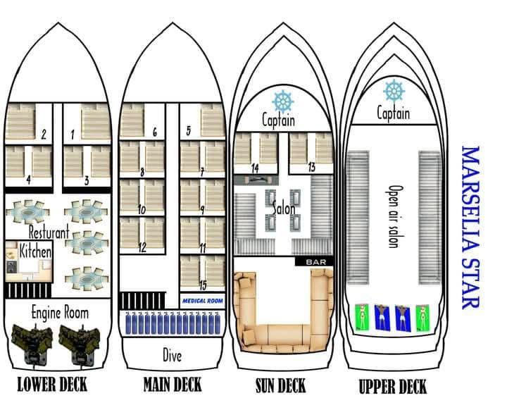 Welcome aboard Marselia Star, a liveaboard borne out of a passion for the ocean, exploration, and adventure. Operating in the crystal-clear waters of the Red Sea, our new steel hulled boat, was fully renovated in 2025, and is the only safari boat in the Red Sea equipped with a diver lift. This unique feature, combined with our expertise and state-of-the-art facilities for technical diving (both OC and CCR), sets us apart from the rest.