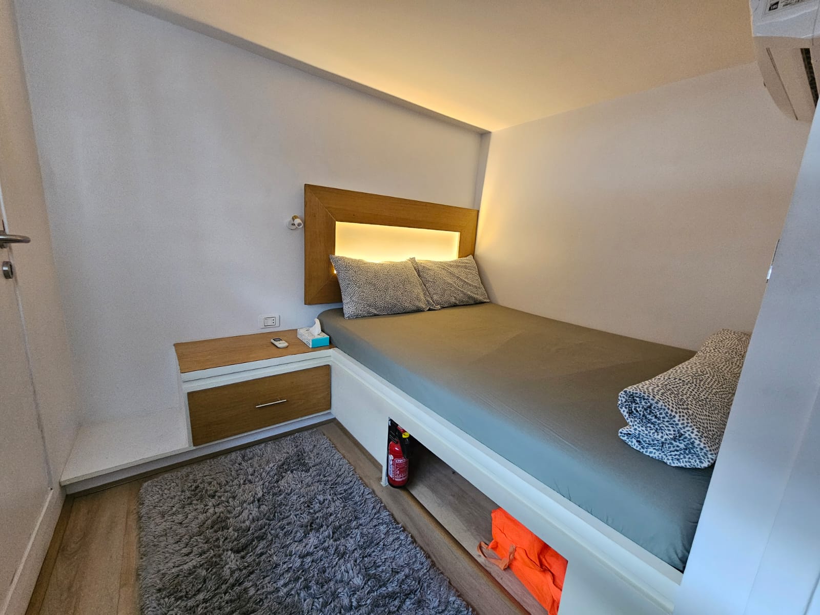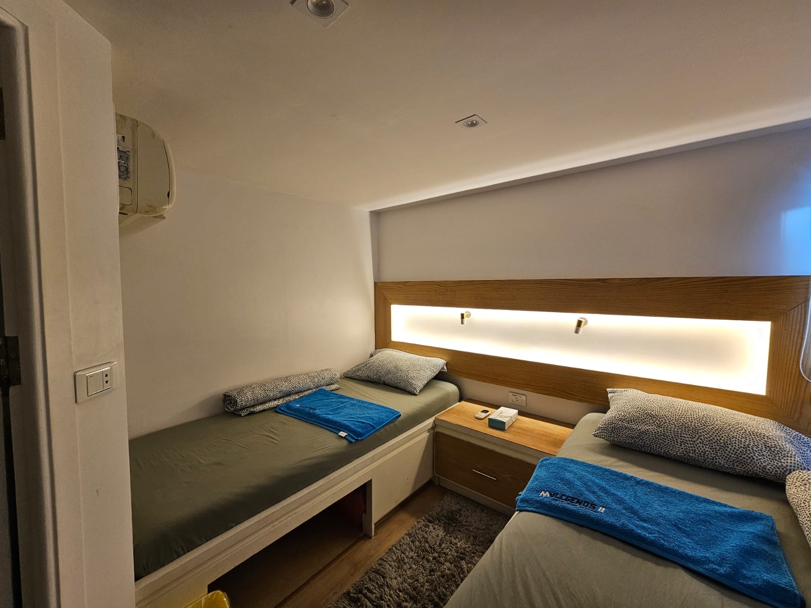 Experience some of the best views that the Egyptian Red Sea has to offer from one of our upper deck Double Cabins. Perfect for diving couples and for those who want to bring a “non-diving” partner with them to enjoy some sunbathing or snorkeling. Your cabin will be cleaned daily throughout your stay and features include 220v electricity, reading lights, storage cupboards, an ensuite bathroom, fresh towels (for both bathing and dive use) and purpose made mattresses for maximum comfort.